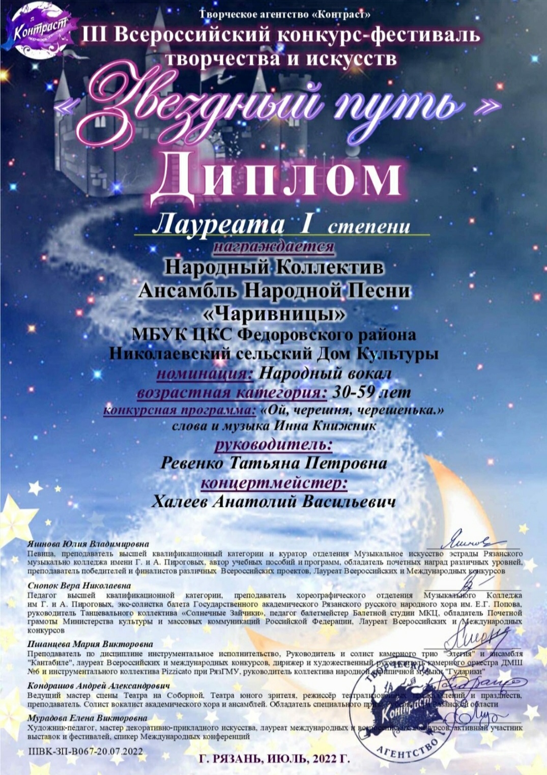 Ансамбль народной песни "Чаривницы" из села Николаевка Федоровского района Саратовской области стал лауреатом первой степени III Всероссийского конкурса-фестиваля творчества и искусств "Звездный путь"!