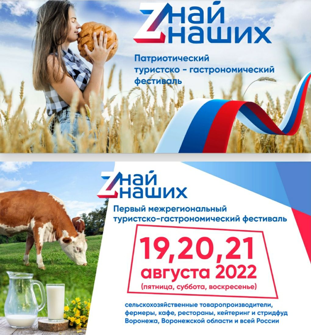 В период с 19 по 21 августа 2022 года на территории Воронежской области планируется проведение первого межрегионального гастрономического фестиваля «Zнай наших» - уникальногособытийного мероприятия, направленного на развитие патриотического духа общества и поддержку отечественного производителя.