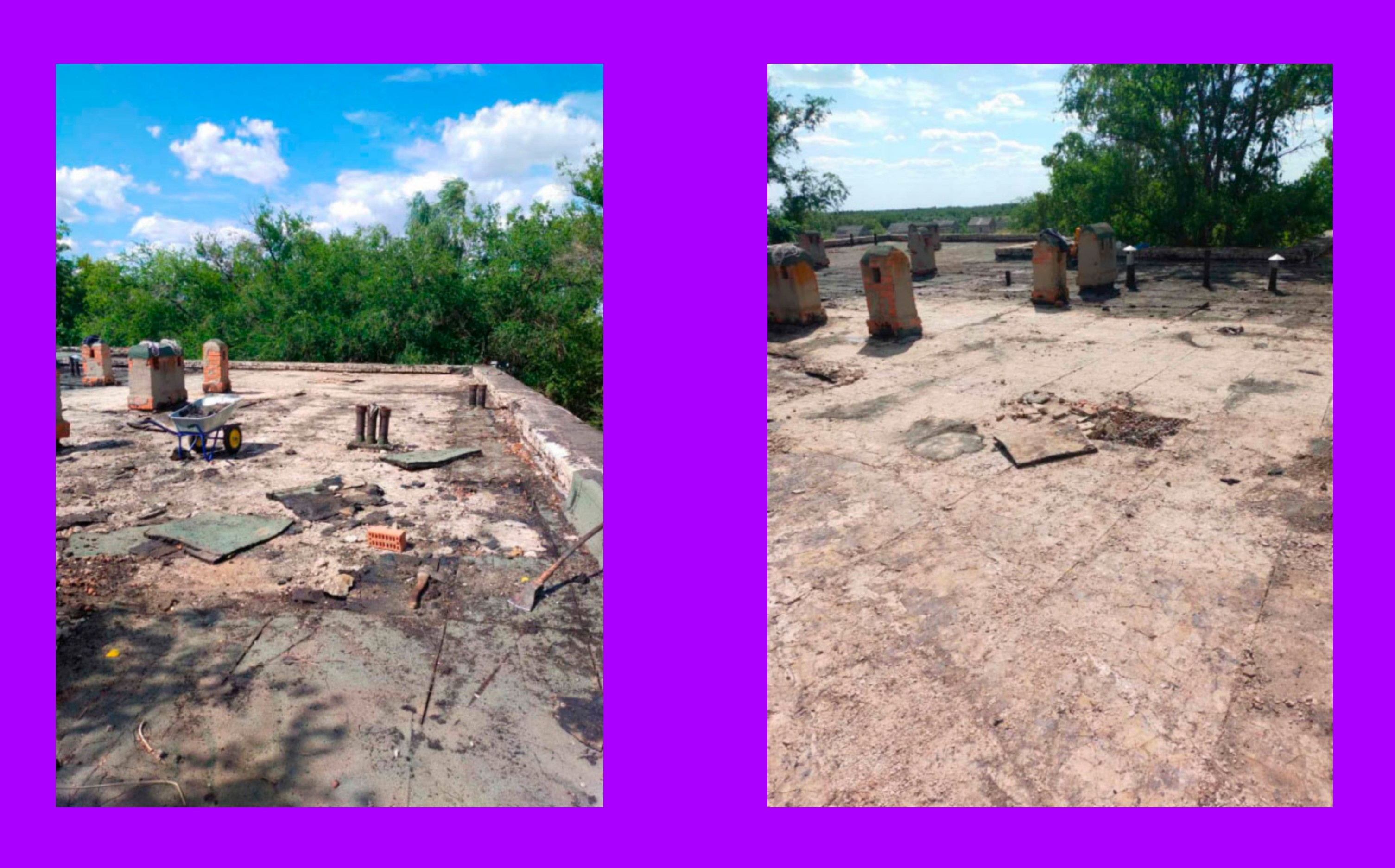 Сейчас активно ведутся работы подрядчиком по снятию старого слоя крыши корпуса детского сада «Ромашка» по ул. Новая р.п. Мокроус.