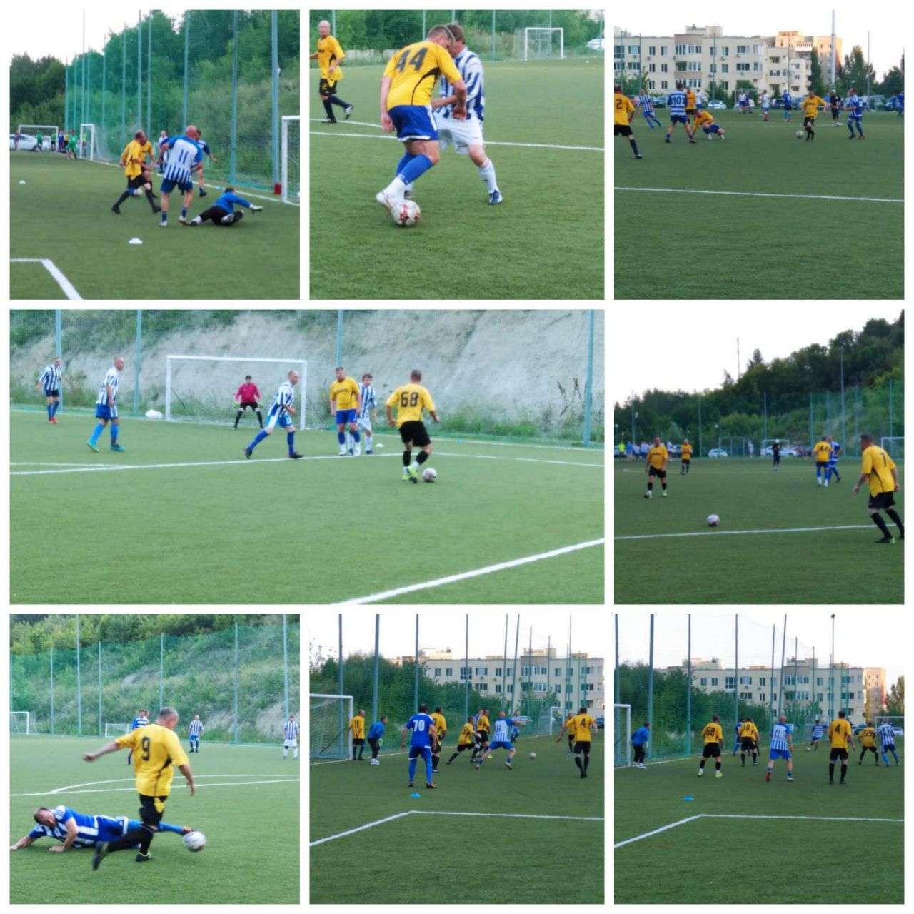 Через несколько минут наши защитники допускают ошибку вблизи собственных ворот и соперники футболисты команды "Сокол" сравнивают счёт в матче 1:1. До окончания первого тайма ветераны "Союза" ещё дважды смогли огорчить вратаря команды "Сокол". Счёт первого тайма 3:1.