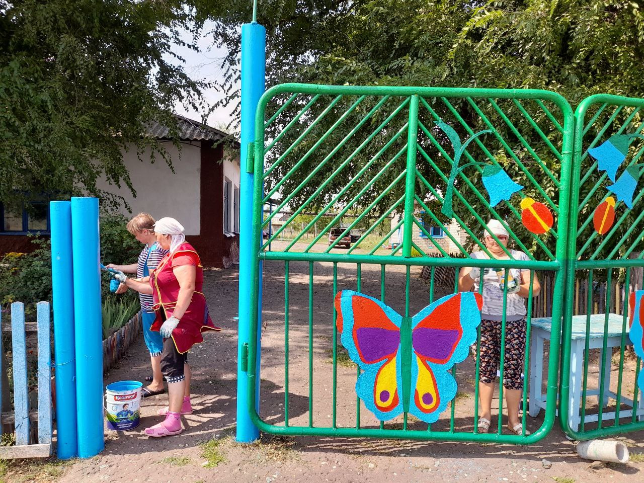 В настоящее время сотрудники провели покраску фасада, окон, игровой площадки, беседки, ворот главного входа.