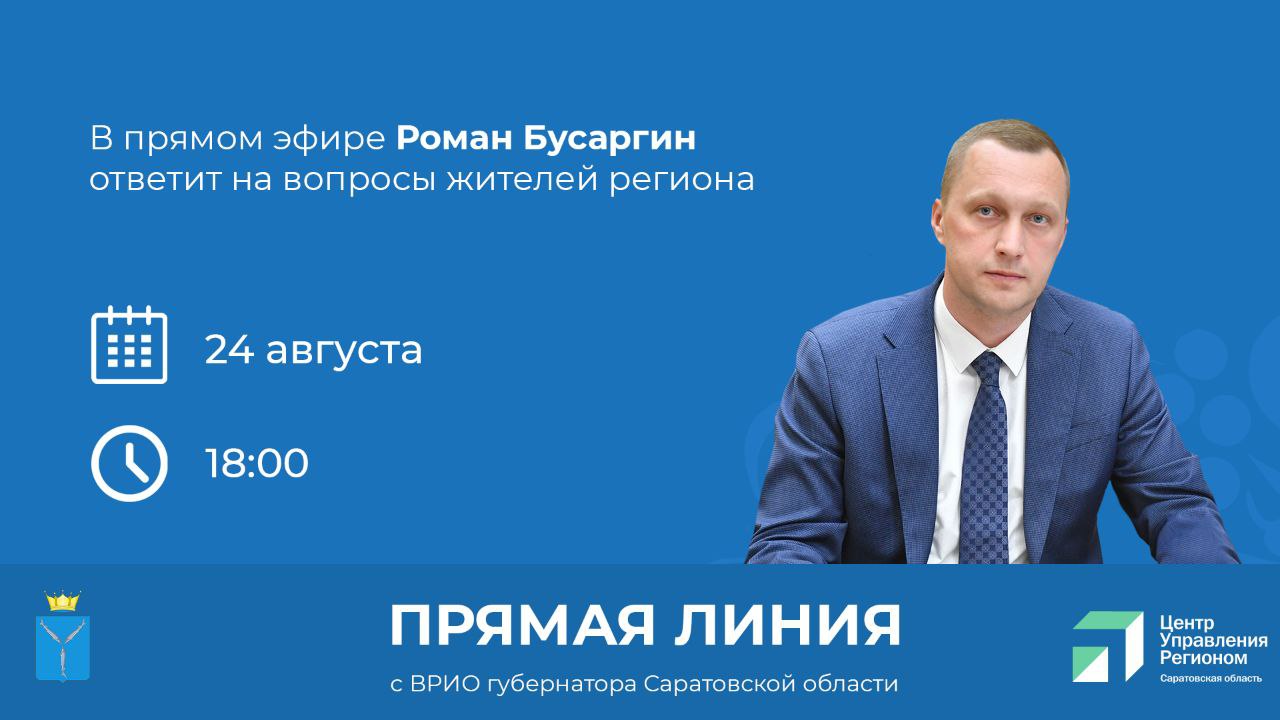В среду, 24 августа, врио Губернатора Роман Бусаргин проведет третью прямую линию с жителями Саратовской области. Начало – в 18.00.