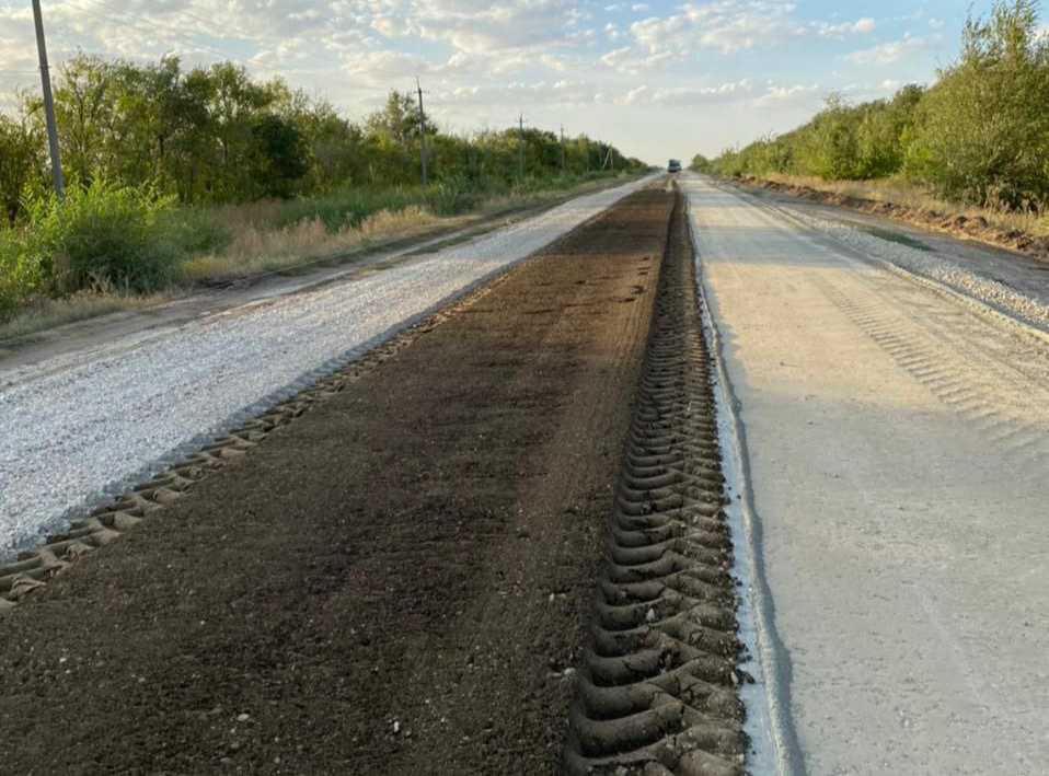 Продолжаются ремонтные работы региональной автодороги "Мокроус - Долина". На данном участке ведутся работы по устройству основания, состоящего из асфальтогранулобетона, которые выполняет подрядная организация ООО «Спецавтострой».