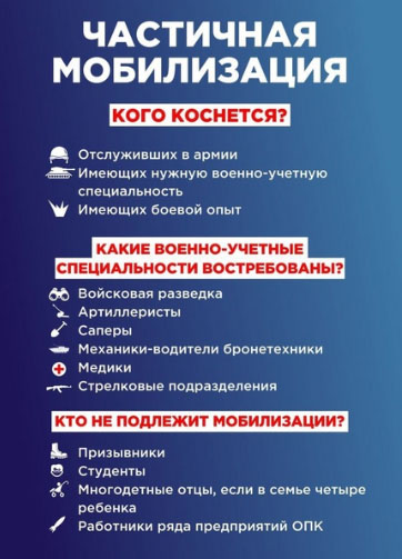 В России по Указу Президента стартовал процесс мобилизации. Она будет частичной. Что это значит, и кого коснется в первую очередь - объясняет инфографика