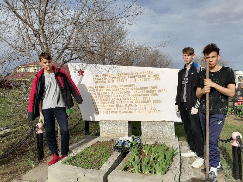 Самые активные члены кружка "Я - Волонтёр" второго корпуса школы им. З.К. Пряхиной р.п. Мокроус (рук. Плево А. Н.) в двадцатых числах апреля отправились на посёлковое кладбище, чтобы привести в порядок Братскую могилу. Уже несколько лет ребята, посещающие кружок, добросовестно ухаживают за ней. Вот и сегодня, взяв с собой лопату, грабли и мешки для мусора ребята с удовольствием навели порядок около могилы. Благоустройство памятного места - это та малая часть волонтёрских дел, когда юноши и девушки отдают дань памяти и выражают свою благодарность всем тем, кто отдал жизнь ради мирного неба в будущем.