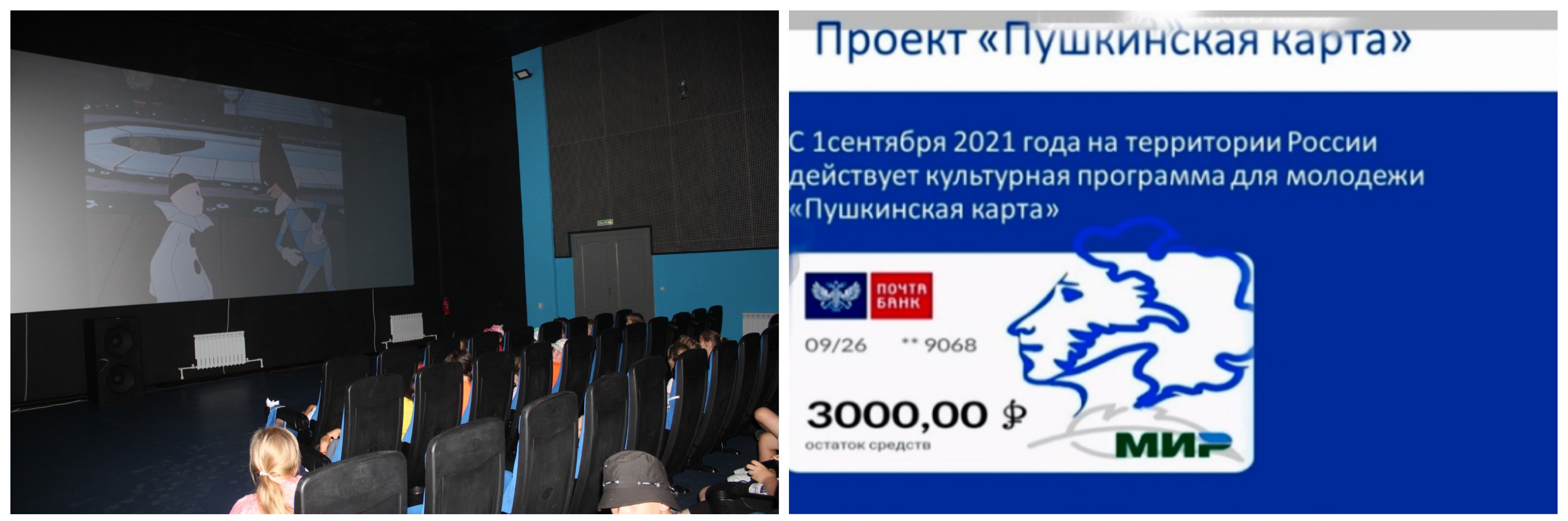 С 1 сентября 2021 года в России начал работу государственный финансово-образовательный проект «Пушкинская карта». Пушкинская карта - это продукт платёжной системы Мир, и на неё раз в год поступает определённая сумма. Но эти деньги - целевые, их нельзя обналичить или потратить в магазине. Они предназначены строго для оплаты билетов на выставки, театральные постановки, концерты и другие культурные мероприятия. Возрастные рамки - от 14 до 22 лет, то есть, даже закончив обучение, человек может участвовать в проекте до того, как ему исполнится 23 года. Мероприятия культурного досуга обладатели карты могут посещать и в городе, и в нашем поселке. В данном случае для молодежи в п Мокроус доступно посещение кинотеатра, через оплату по Пушкинской карте. Этой возможностью воспользовались уже школьники и студенты.