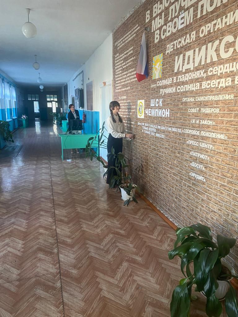 Учебная неделя в Калдинской школе началась с поднятия флага Российской Федерации и исполнения Гимна РФ. На линейке директор школы Наталья Сергеевна Джубанткалиева вручила грамоты за победу в областном экологическом конкурсе "Кроншнеп-птица года" ученикам 7 класса Анатолию Гуленко и Камилле Юневой. Право поднять флаг представили победителю викторины.