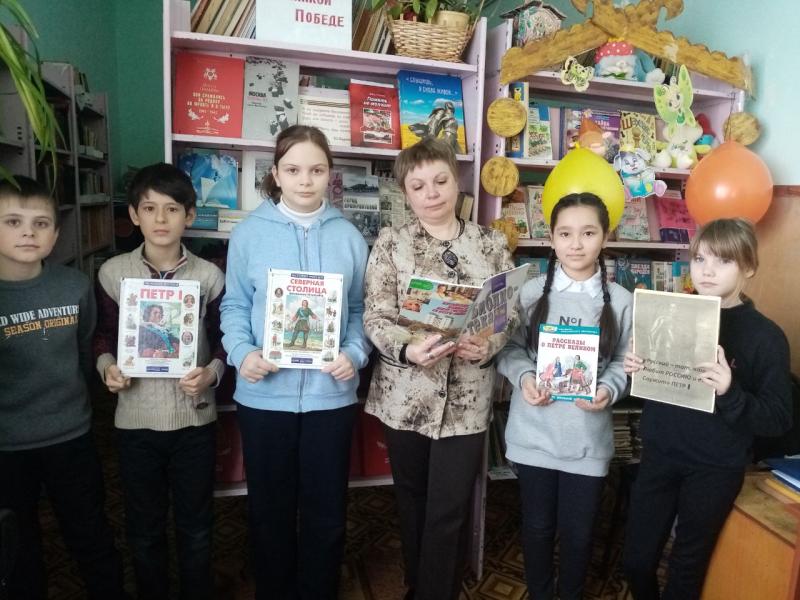 Библиотеку посетили ученики 5 класса МОУ СОШ с. Мунино (кл. рук. Христюк Е. В.). Из книги "Рассказы о Петре Великом" и рассказа библиотекаря ребята узнали подробности о самой грандиозной личности в истории государства Российского - Петре Первом.
